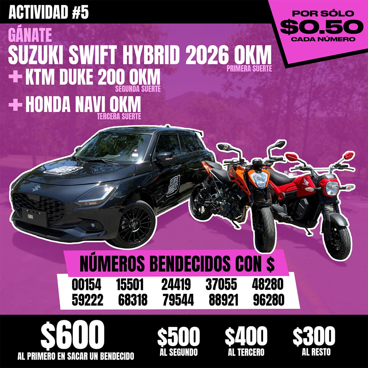 Los vehículos se jugarán en un Live en nuestra cuenta oficial de Instagram. Síguenos para mantenerte al tanto.